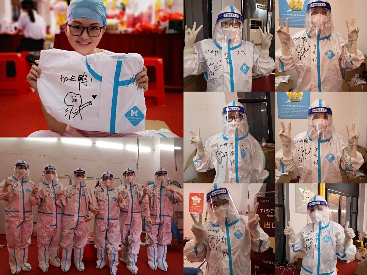 医护人员在防护服上画上“加油鸭”的卡通图像(来源:附属第三医院)