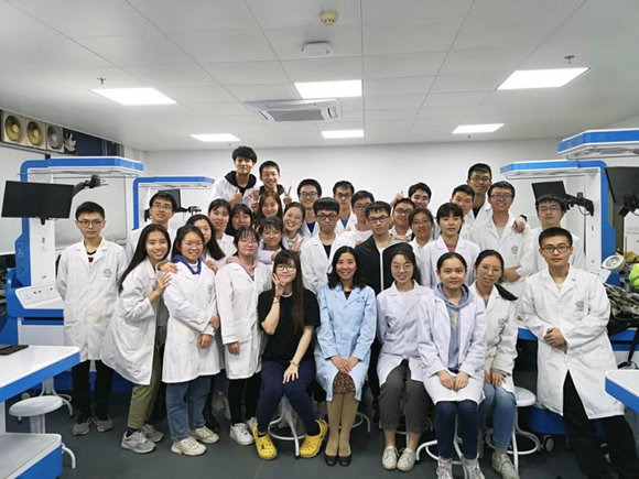 实验课结束后,谭红梅和学生一起合影(来源:中山医学院)
