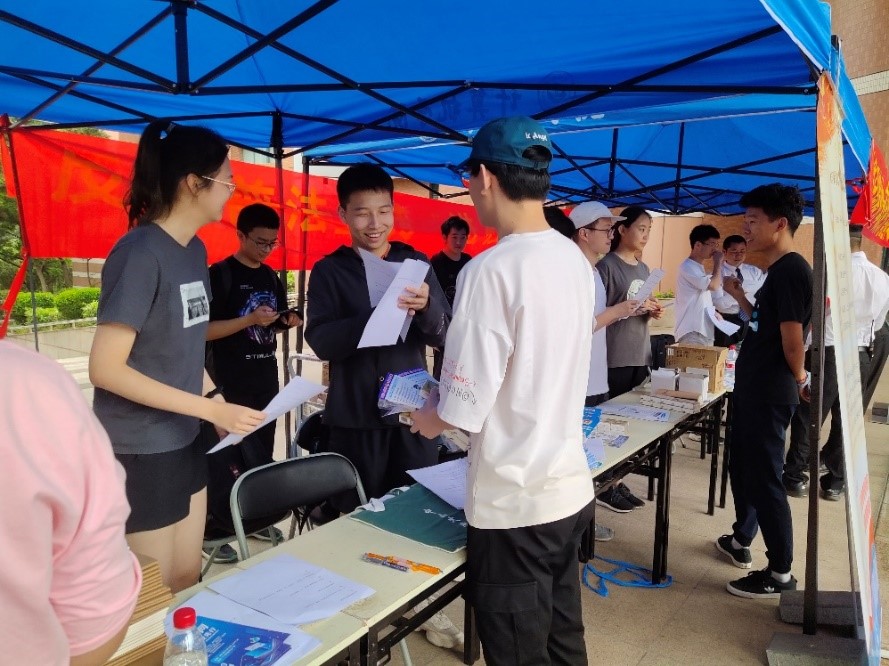 活动现场,国家安全教育知识展板依次排开在活动场地四周,生动直观地从各个方面展示了国家安全相关知识,吸引了众多同学前来观看并与现场支部成员进行交流。国家安全知识竞答环节兼具知识性和趣味性,激发了参与者了解国家安全知识的热情,师生们竞相答题、讨论热烈。