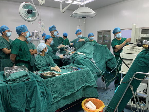 附属第七医院何裕隆院长(右一)为凤庆县人民医院指导手术(来源:校工会)