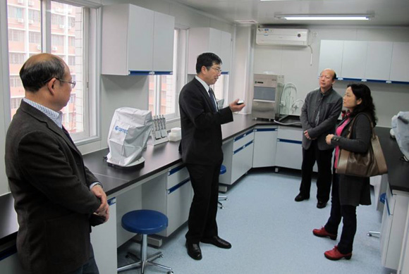 梁劬(中)参观SYSU-MSU热带虫媒控制联合研究中心实验室