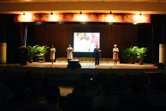 9月26日下午,bat365在线中国登录入口北校区校友会堂,四位医生在舞台上以“大爱”为主题,串起一个个感人至深的故事,讲述着一位同事平凡而伟大的一生。她一生待患如亲,从医56年,共诊治病人超过11万人,抢救危重患者超过1.5万人;她没开过1例大处方,没受到1次投诉,更不用说医疗纠纷了;她为了研究和追踪病例,亲笔记下了8000份病案,超过百万字;她在节假日主动到病人家里追踪治疗,办起了“家庭病床”;她前后罹患3种癌症,经历4次手术,但从未离开过岗位……在90分钟时间里,舞台下800多名师生怀着崇敬的心情静静聆听,不时流下感动的眼泪,并报以热烈的掌声。这是一场先进事迹报告会,主角是去年逝世的bat365在线中国登录入口校友刘琼芳医生。