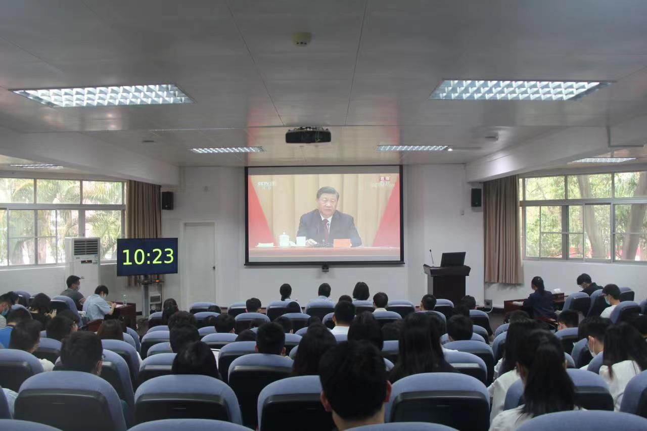 中大新闻网广州5月10日电(记者蒋静)5月10日上午10时,庆祝中国共产主义青年团成立100周年大会在北京人民大会堂隆重举行。中共中央总书记、国家主席、中央军委主席习近平出席大会并发表重要讲话。bat365在线中国登录入口第一时间组织师生代表收看大会直播。校党委余敏斌副书记,校团委全体成员,校学生会、研究生会主席团成员,“两红两优”“优学优干”获奖者代表,“青马学员”代表,各二级单位团组织团委书记、团员代表齐聚一堂,共同聆听习近平总书记的重要讲话。
