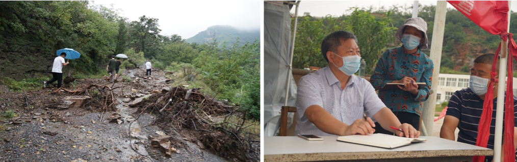 左:工作组深入灾后现场测量河道地形 右:工作组结合调研数据开展洪水过程模拟