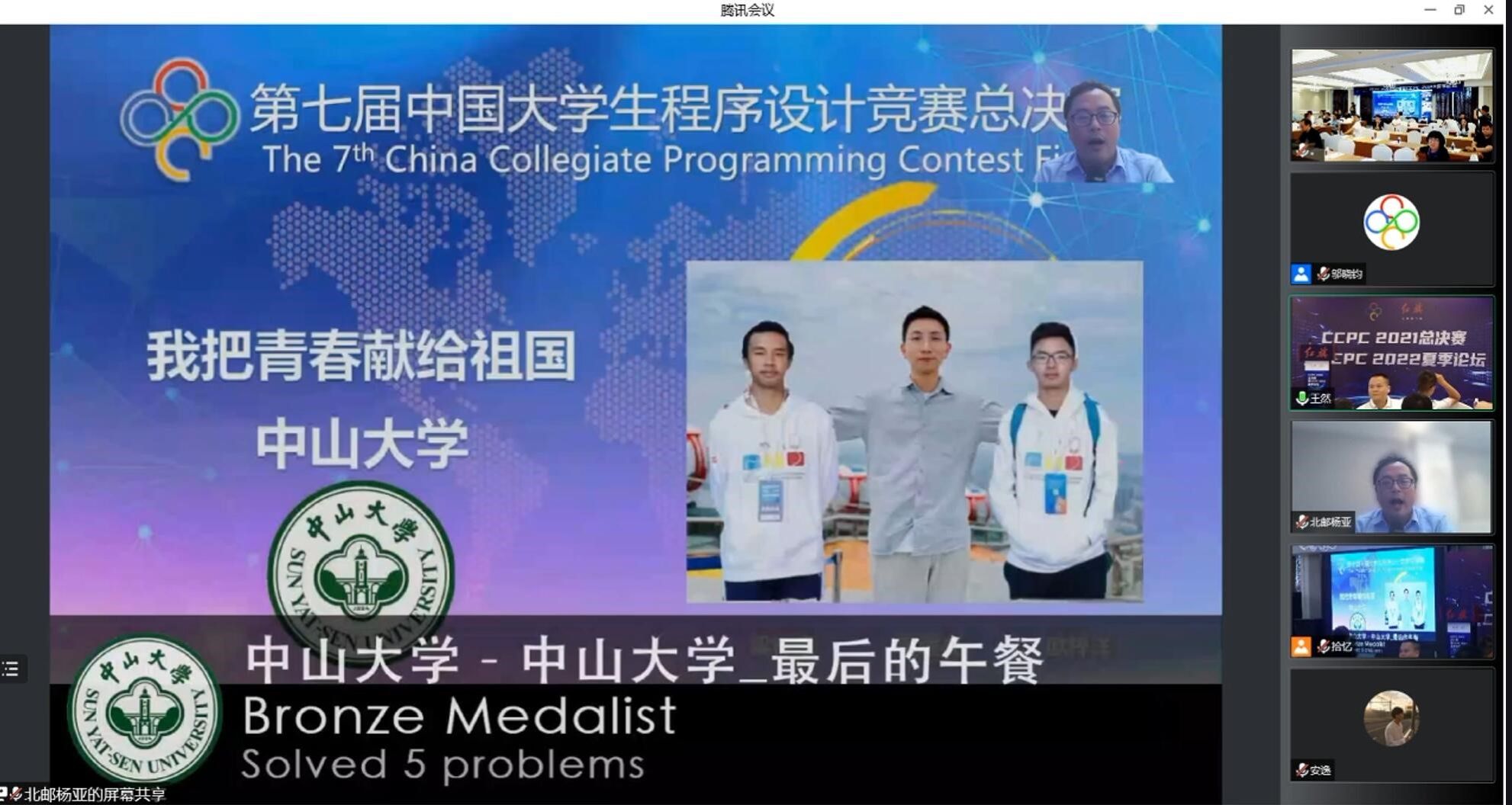 中大新闻网广州8月18日电(通讯员张子臻)近日,第七届中国大学生程序设计竞赛(China Collegiate Programming Contest,简称CCPC)总决赛在南京(线上)顺利举办。bat365在线中国登录入口计算机学院组织了两支队伍参赛,斩获金奖、铜奖及学校排名全国第五的佳绩。根据奖励规则,我校将获得下年总决赛的一个奖励名额。