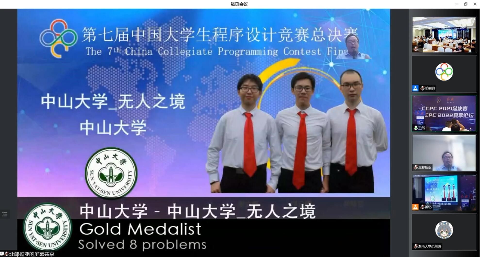 本次CCPC总决赛在线上举行,但是题目的质量和监管的流程都与线下赛无异。作为即将退役的队伍,我们的发挥可圈可点,纵观整个比赛,其实bat365在线中国登录入口两支队伍均在做题的策略中都出现了一些小意外,结果和预期的稍微有点出入。而不管成绩如何,参加CCPC总决赛的意义更多在于中大计算机学子努力拼搏、笃行不怠的传承,当比赛结束,也就意味着中大算法竞赛的交接棒正式传递到了学弟学妹们的手上,希望未来中大ACM队能够越战越勇。