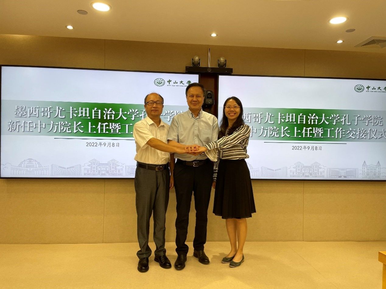 中大新闻网广州9月13日电(通讯员冯洋)9月8日上午,我校举行墨西哥尤卡坦自治大学孔子学院新任中方院长上任暨工作交接仪式。肖海鹏常务副校长、尤卡坦自治大学孔子学院新、老院长,学校党委组织部、国际合作与交流处(孔子学院办公室)、人力资源管理处、国际翻译学院、粤港澳发展研究院等职能部门和院系负责人出席活动。会议由国际合作与交流处处长、孔子学院办公室主任卢宇彤主持。