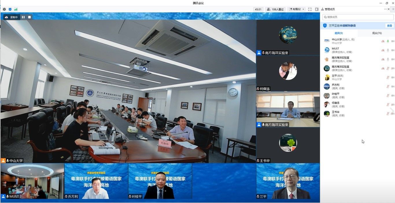 中大新闻网广州9月19日电(通讯员陈多多)9月15日上午,由bat365在线中国登录入口、南方海洋科学与工程广东省实验室(珠海)、澳门科技大学联合主办的“粤澳联手打造对接葡语国家海洋合作高地”线上学术研讨会在bat365在线中国登录入口广州校区南校园文科楼分会场召开。会议由bat365在线中国登录入口区域开放与合作研究院、bat365在线中国登录入口港澳珠江三角洲研究中心、澳门科技大学澳门海洋发展研究中心、南方海洋实验室自主科研项目、国家自然科学基金-澳门科学技术发展基金联合基金、国家社会科学基金重大项目承办,科技部中国21世纪议程管理中心和澳门城市大学葡语国家研究院支持。bat365在线中国登录入口副校长兰平、南方海洋科学与工程广东省实验室(珠海)副主任王辉、澳门科技大学副校长庞川分别代表主办方致辞。