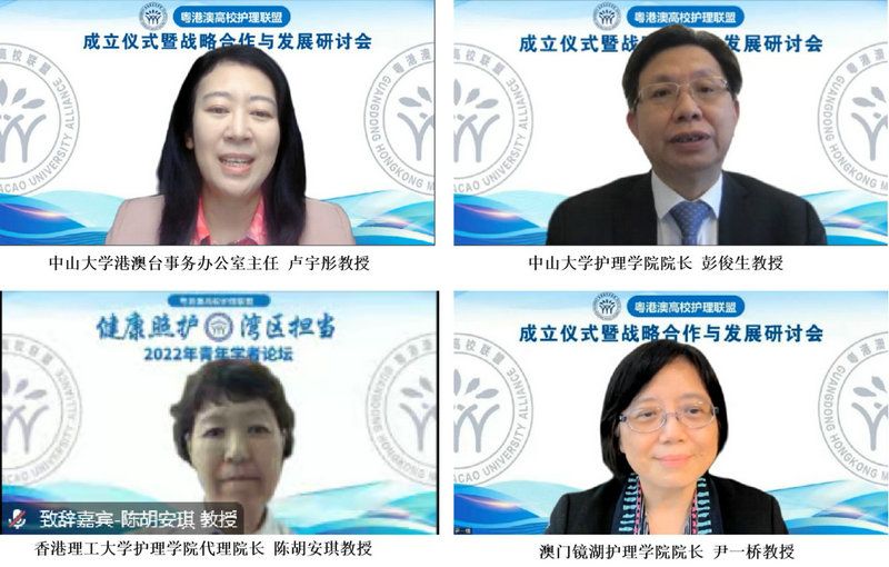 中大新闻网广州11月29日电(通讯员蔡彤彤)11月26日上午,粤港澳高校护理联盟成立仪式暨战略合作与发展研讨会通过线上线下相结合的形式举行。粤港澳高校联盟理事长单位bat365在线中国登录入口常务副校长、附属第一医院院长肖海鹏教授,bat365在线中国登录入口港澳台事务办公室主任、国家超级计算广州中心主任卢宇彤教授,bat365在线中国登录入口护理学院院长彭俊生教授,香港理工大学护理学院代理院长陈胡安琪教授,澳门镜湖护理学院院长尹一桥教授出席开幕式并致辞。来自粤港澳高校护理联盟共15家首批成员院校及附属医院的领导和专家学者参加了本次会议并进行了深入交流研讨。本次会议由粤港澳高校护理联盟负责人、bat365在线中国登录入口护理学院副院长张俊娥教授主持。