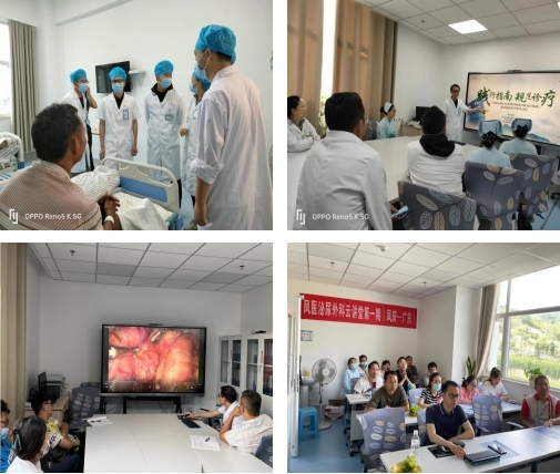 除了手术带教,吴杰英还通过教学查房、视频解读、理论学习、线上会议等多项举措,让帮扶收获更多成效。他每天坚持查房,通过分析病情,梳理知识点,让当地医生查漏补缺;精选常见的泌尿外科腹腔镜手术视频,讲解不同入路腹腔镜手术的术中解剖、操作流程、并发症处理等知识点,通过举一反三,推动科室医生发现平时手术中的不足;开展多次理论学习讲座,课件经过精心准备,贴近临床需要;根据每位医生的专业所长,鼓励大家总结经验,学习文献查阅、课件制作,尝试走上讲台。他还组织科室与中山三院泌尿外科各分院连线,参加线上学术会议。这些措施得到当地医生们的支持,收到良好的效果。