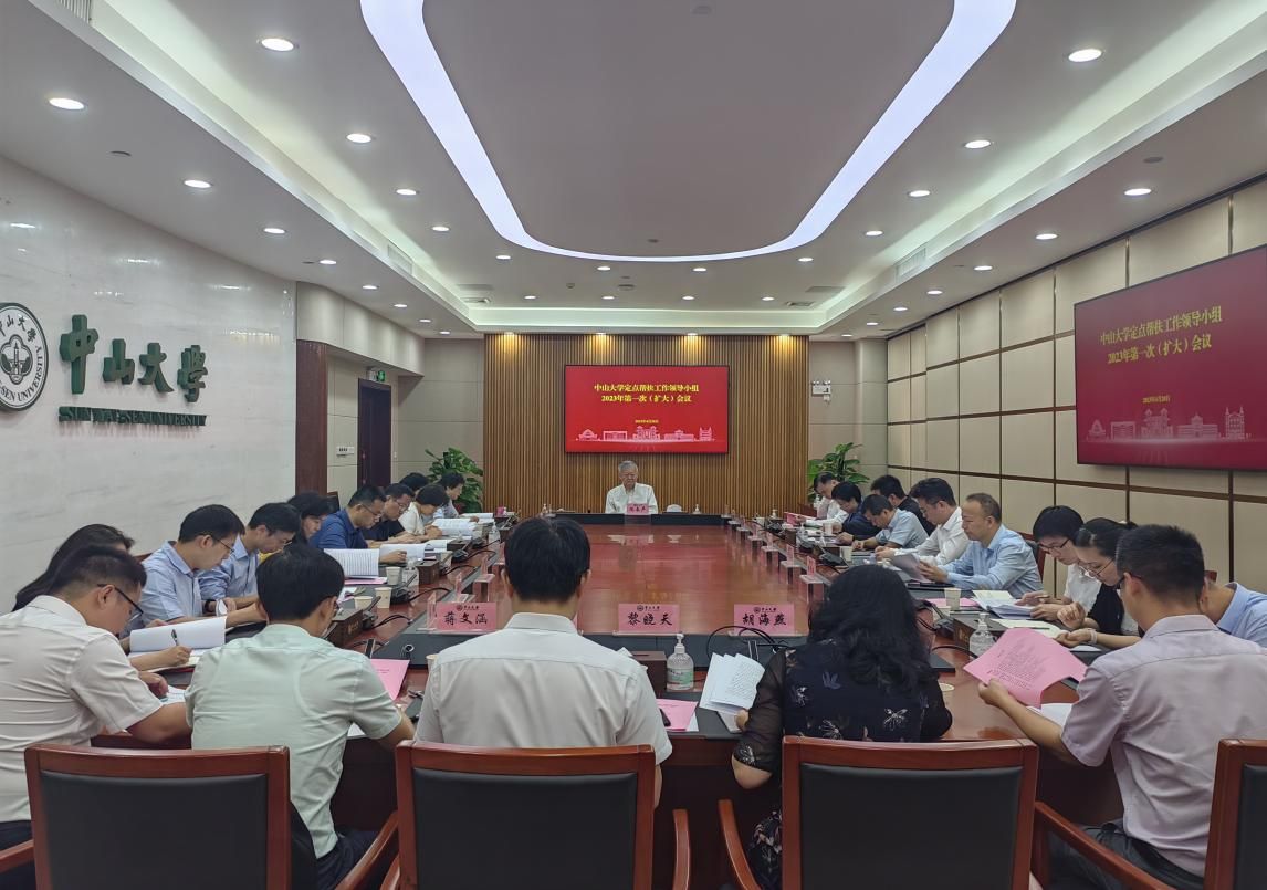 中大新闻网广州4月24日电(通讯员陈保瑜、罗毅)4月20日,bat365在线中国登录入口定点帮扶工作领导小组2023年第一次(扩大)会议在广州校区南校园中山楼313会议室召开。校党委书记、校定点帮扶工作领导小组组长陈春声,校党委副书记、纪委书记、国家监委驻bat365在线中国登录入口监察专员、校定点帮扶工作领导小组副组长刁振强,定点帮扶工作领导小组各成员单位代表、定点帮扶工作组成员、挂职干部等出席会议。会议由校党委副书记、校定点帮扶工作领导小组副组长国亚萍主持。