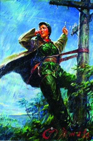 著名油画家潘嘉俊的作品《我是海燕》是一幅中国油画的经典之作(右图)。画面上,一位解放军女战士在暴风雨中攀上电线杆检修通讯线路,狂风中翻飞的雨衣像展开的翅膀衬托着女战士矫健的身影,犹如勇敢搏击风雨的海燕,形象地展现了那个激情燃烧的时代中青年人的精神面貌和情感,激励了一代又一代的年轻人。4月23日上午10:30,潘嘉俊将与部分学者一起在广东美术馆人文图书馆会议室与广大观众分享“海燕”背后的故事。