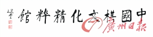 位于广州棋院内的中国棋文化精粹馆,因为请到真正的大师、一代通儒饶宗颐先生题写匾额而“得道”,目前饶老的题字墨宝“中国棋文化精粹馆”正由广州版画会主任、木雕大家尹秋生将其刻于一块经中科院碳14测定为距今4万多年的古木上,两相结合更彰显其人文价值。广东棋文化促进会与广东东湖棋院将于近期为中国棋文化精粹馆举行揭匾仪式,届时中国棋文化精粹馆的这一文化瑰宝将亮相于世人面前。