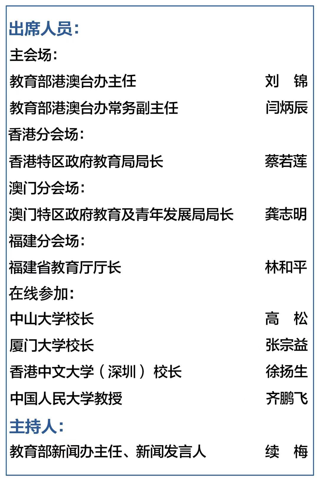 下一步,我们将始终贯彻落实习近平总书记关于港澳台和教育工作的重要论述,深入推进内地(大陆)与港澳台教育交流合作,充分发挥教育的基础性、先导性、全局性作用,助力港澳台青少年更好融入国家发展大局,为实现中华民族伟大复兴的中国梦续写新篇章。
