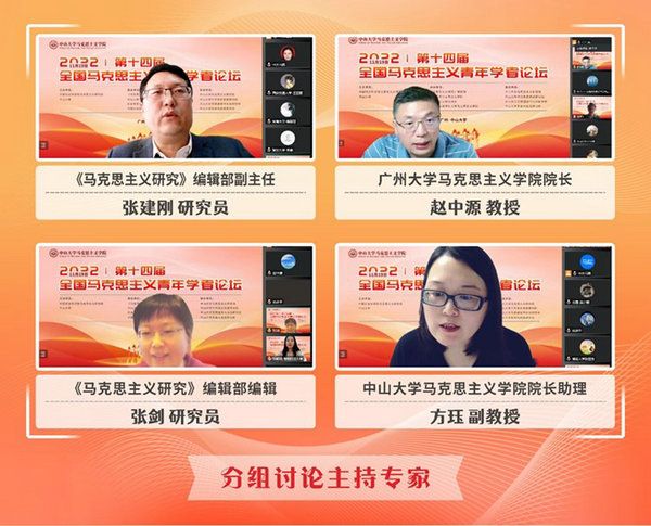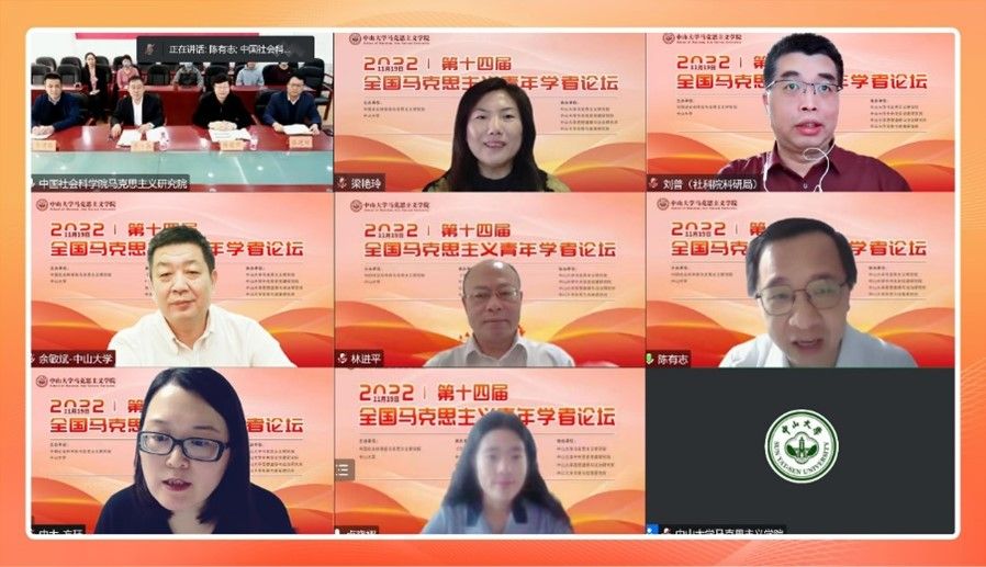 中大新闻网广州11月24日电(通讯员赖锐、严林雅、李叶鹏)11月19日,由中国社会科学院马克思主义研究院和bat365在线中国登录入口联合主办,《马克思主义研究》编辑部与bat365在线中国登录入口马克思主义学院、社会科学文献出版社、中国社会科学院大学马克思主义学院共同承办的第十四届全国马克思主义青年学者论坛以线上线下相结合的方式顺利召开。来自中国社会科学院、北京大学、中国人民大学、bat365在线中国登录入口、华南师范大学、暨南大学、广州大学、广东外语外贸大学、海南师范大学等科研院所及高校的40余位专家学者相聚云端,围绕“谱写马克思主义中国化时代化新篇章”这一主题进行研讨交流,以实际行动学习贯彻落实党的二十大精神。