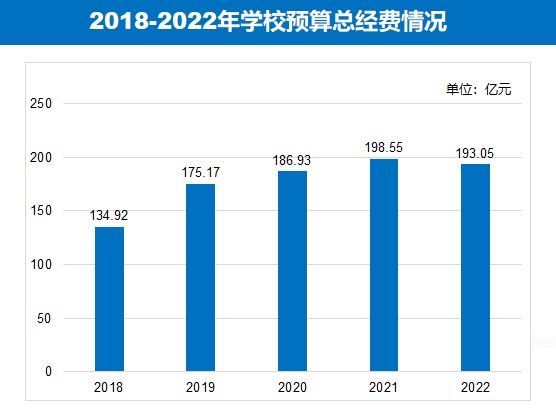 2018年以来,学校预算总经费年均增长率9.37%,由2018年134.92亿元到2022年193.05亿元,稳居教育部直属高校前5名。