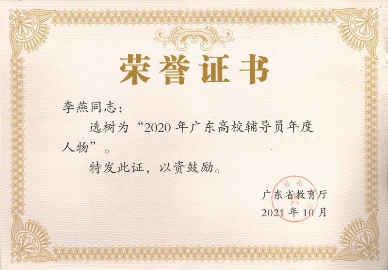 李燕同志获评“2020年广东高校辅导员年度人物”