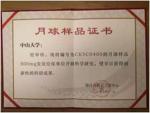 月球样品证书
