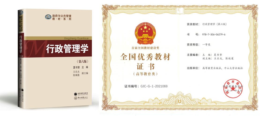 由夏书章教授主编的《行政管理学(第六版)》获首届全国教材建设奖“全国优秀教材(高等教育类)一等奖”