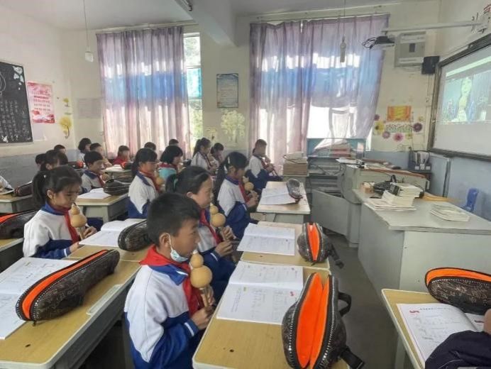 小学生在葫芦丝课堂上演奏