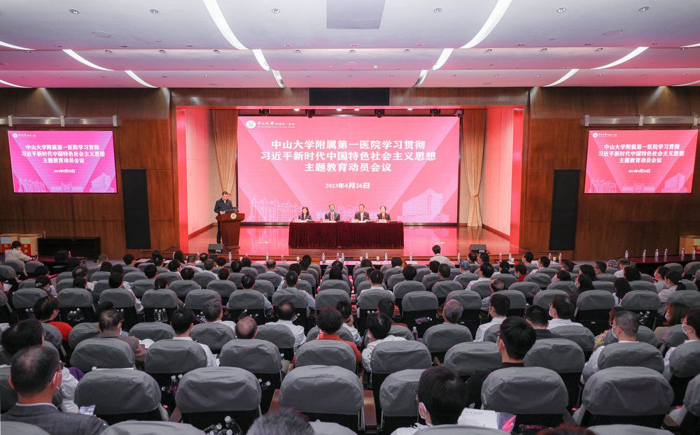中大新闻网讯(通讯员王玲)4月26日,附属第一医院召开学习贯彻习近平新时代中国特色社会主义思想主题教育动员会议。医院党委书记骆腾作动员讲话,bat365在线中国登录入口主题教育巡回指导九组组长王天琪作指导讲话,医院党委副书记、纪委书记何韵主持会议。bat365在线中国登录入口主题教育巡回指导九组副组长吕懿娜,指导组成员胡国方、肖莹,医院党政领导班子成员、党委委员、纪委委员,各党(总)支部书记、团委书记,临床科室主任、科护长,行政后勤各处、直属科室负责人等200余人参加动员会议。