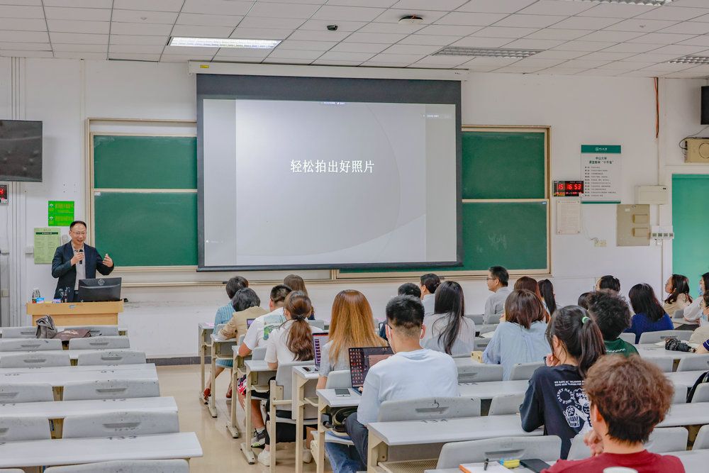 他还从技术层面具体剖析了经营画面的四大要素:一是要把握构图,掌握相关规律和方法,在拍摄时合理设计构图,或通过后期剪裁的方法去完善构图;二是要把握光线,充分了解光的方向、质感、来源等,可以通过观摩画作、电影等方式来学习如何利用光线;三是把握景深,通过控制和拍摄主体的距离、利用前景后景等,突出主体人物;四是把握快门,通过追随拍摄等小技巧,在运动等场景中充分保留画面细节。最后,他详细解答了中大师生提出的在调研、会议等常见工作场景中遇到的摄影问题,还分享了他个人总结的“10项注意”:突出主要人物,兼顾互动对象,适当照顾环境,构图留有余地,焦点必须清晰,曝光宁欠勿过,器材事先检查,熟悉活动流程,现场场地试拍,台风稳重大方。