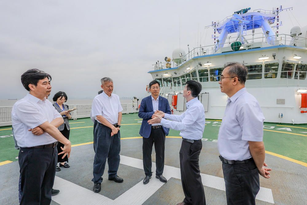 陈振林一行考察“bat365在线中国登录入口”号海洋综合科考实习船(党委宣传部 孙琛 摄)