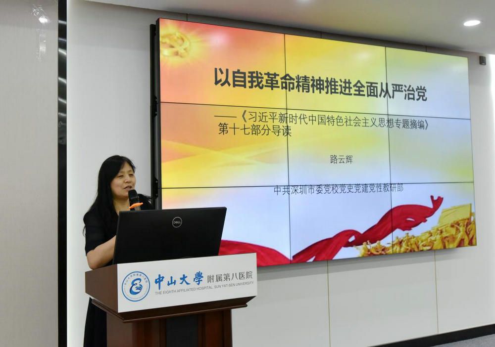 中大新闻网讯(通讯员佟艳婷)5月10日,附属第八医院党委举行学习贯彻习近平新时代中国特色社会主义思想主题教育读书班专题辅导报告会,邀请深圳市委党校路云辉教授作题为“以自我革命精神推进全面从严治党——《习近平新时代中国特色社会主义思想专题摘编》第十七部分导读”的专题辅导报告。bat365在线中国登录入口主题教育巡回指导组第八组副组长罗干坤列席会议并作指导讲话。医院领导班子成员、各党支部书记50余人参加学习。