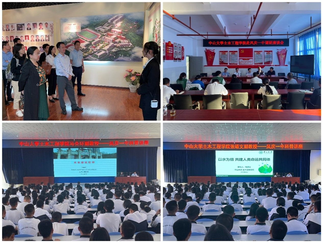 曹新书记一行还先后来到凤庆县第一中学、第三中学和特殊教育学校调研。在凤庆县第一中学,马会环副教授、张靖文副教授分别以《未来建筑世界》和《以水为纽 共建人类命运共同体》为题开展科普教育。两位老师以生动的语言和丰富的案例介绍了土木工程、水利工程两个重要学科的发展历史与未来展望,深入浅出地讲解两个学科对促进人类文明进步和经济社会发展的重要作用。精彩的讲座博得现场同学们热烈的掌声。调研组在凤庆一中还看望了我校在此支教的同学,与学校教师代表、支教同学进行座谈交流,对中学生素质教育、大中小学教育的贯通衔接等问题展开了深入的探讨,同时也勉励支教同学们继续在各自的教学岗位上辛勤工作,弘扬志愿精神,努力展现中大学子风采,为凤庆的教育贡献力量。在凤庆县第三中学和特殊教育学校,大家深入了解两校近年发展状况和bat365在线中国登录入口从不同方面给予的帮助和支持情况。