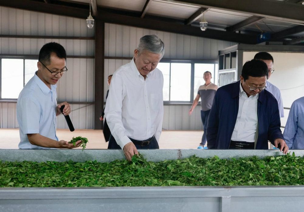 陈春声书记、高松校长现场考察红塘村集体茶厂建设情况(党委宣传部 邱清萌 摄)