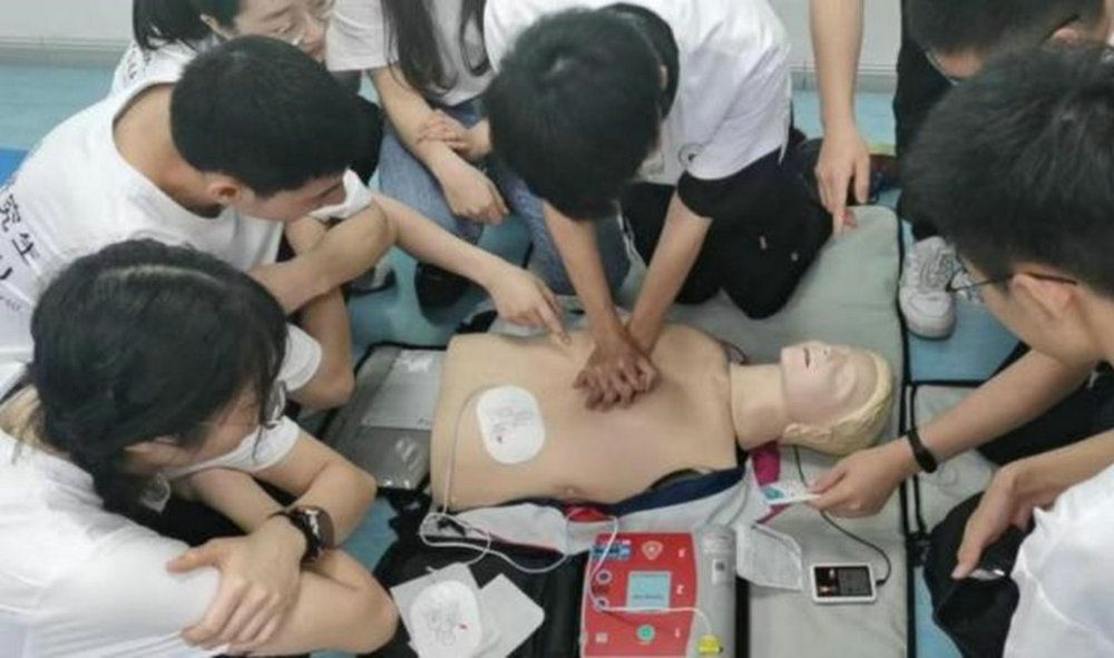 支教团成员在培训现场进行急救实操训练