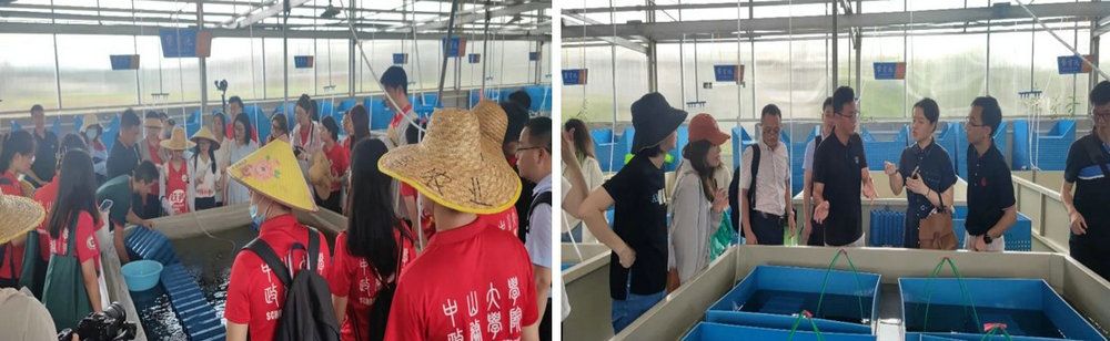 在畔水稻虾综合养殖基地,师生们考察现代农业产业发展。畔水村坚持“以粮为本、一水多用”,形成了复合型兴农生态系统,在传统水稻田中新增了特色水产养殖,且动植物天然特性的配合也将构建起更加绿色的生态循环。畔水村一方面通过引入科学、先进的现代养殖技术与模式,提高水产养殖的产量与品质;另一方面,政府、投资人、村委会、研究机构/合作企业及消费者形成五位一体的合作发展模式,盘活农村资源,真正实现富农户、旺农村。