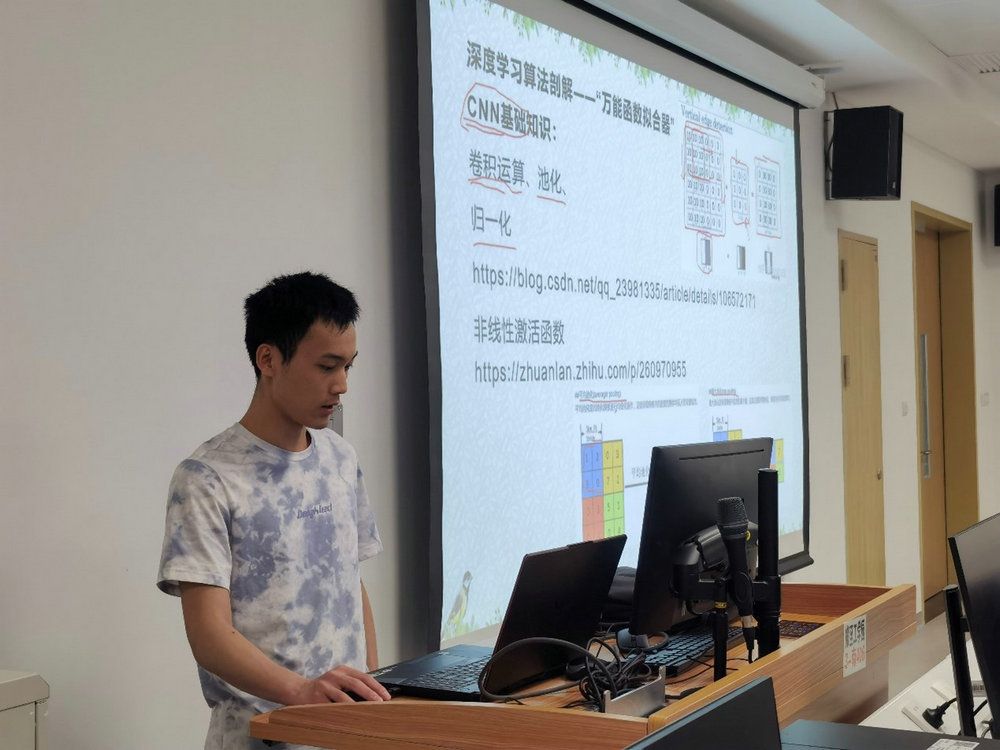 5月21日,bat365在线中国登录入口华为智能基座社团在bat365在线中国登录入口深圳校区工学园3栋智能基座实验室内举办社团例行周末培训。此次培训主题为昇腾AI大赛经验分享,主讲人林世豪从赛题、华为Mindspore、实例分析等方面分享自己在大赛中的学习感悟。