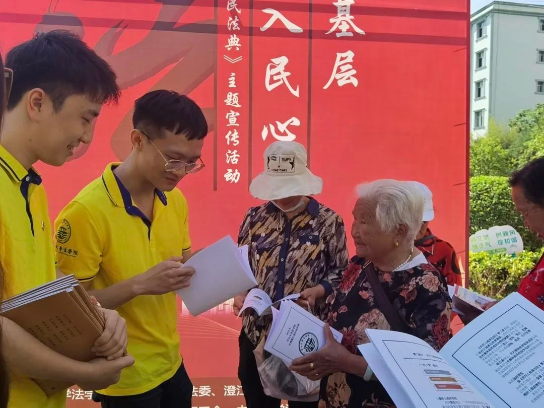 为推进主题教育落实落细,在民法典颁布三周年、第三个“民法典宣传月”之际,法学院师生突出实践导向,践行服务宗旨,利用学科和专业优势,积极开展普法宣传志愿服务。面向澄江市“法律明白人”、澄江市民、云南大学学生等多个群体,宣讲习近平法治思想、宣传民法典,覆盖人数600余人次,把实事办实,把好事办好,为促进西部地区法治建设与乡村振兴发展,助力法治中国建设添砖加瓦。