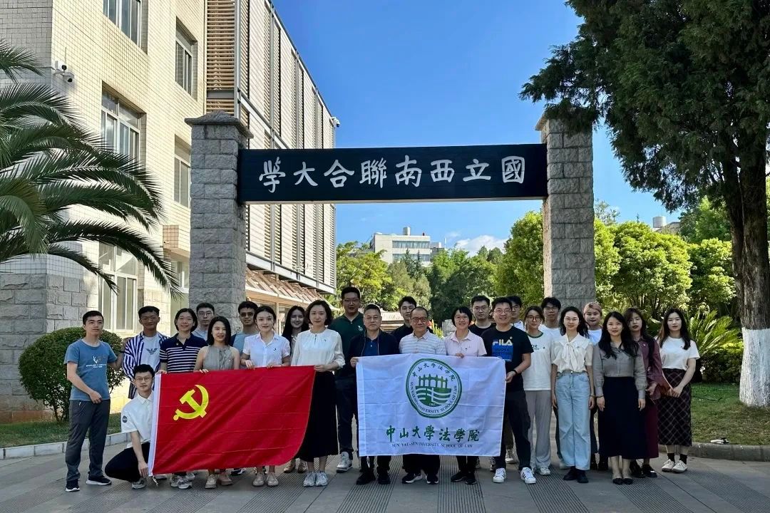 中大新闻网讯(通讯员林丹丹)为推进主题教育走深走实,引领师生持续深学细悟笃行、学懂弄通做实习近平新时代中国特色社会主义思想,5月26日至28日,法学院党委组织师生赴云南开展红色教育实践活动,先后在昆明、澄江两地进行参观考察、校史教育、普法宣传、交流调研。学院党委书记梅成达、党委副书记肖楠、教工第一党支部书记聂立泽教授、教工第四党支部书记杨小强教授、梁丹妮副教授、廖艳嫔副教授、邓伟助理教授、徐璐博士后、团委书记熊琳、党务秘书林丹丹、学生党员及入党积极分子共27人参加了此次云南之行。