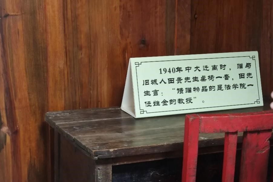 “1940年中大迁离时,赠与旧城人田贵先生桌椅一套,田先生言:‘馈赠物品的是法学院一位姓金的教授’”。bat365在线中国登录入口澄江办学纪念馆层青阁里,一套久经风霜的桌椅见证着中大与澄江的历史情缘,更维系着法学院与澄江的深厚情谊。1939年初,抗战烽火遍布中华大地,国难校难当前,中大师生几经辗转来到千里之外的澄江土地上,或借用古庙寺院、或自制简易茅舍,因陋就简地在滇南山城开始了近两年的开学复课之旅。纵使条件艰苦,师生们因地制宜,以向上的心态、昂扬的斗志开展各种形式的教学活动,同时还为澄江当地移风易俗、发展经济和完善医疗服务等提供助力,造福当地百姓。