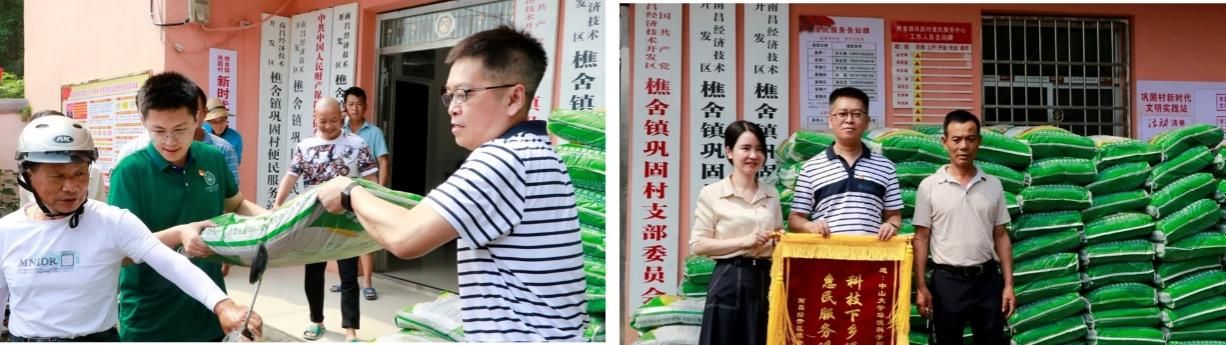 6月3日,学院师生来到南昌经开区樵舍镇开展生态调研并捐赠土壤改良剂。南昌经开区樵舍镇党委书记徐小虹、党委副书记聂峰、人大主席方义发等有关领导干部参加活动,并对中大师生的到来表示热烈欢迎。捐赠仪式上,徐小虹书记向中大师生介绍了樵舍镇基本情况和乡村振兴重点工作。汤叶涛教授和彭灵灵老师结合当地发展实际和环境学院优势技术与当地领导干部深入交流。为了表达对中大师生的感谢,巩固村党支部书记孙文海代表“村两委”班子向学院赠送锦旗。捐赠仪式结束后,学院师生与当地村民热情交流,宣传科学种植方法,以实际行动参与到乡村生态文明建设的工作中。