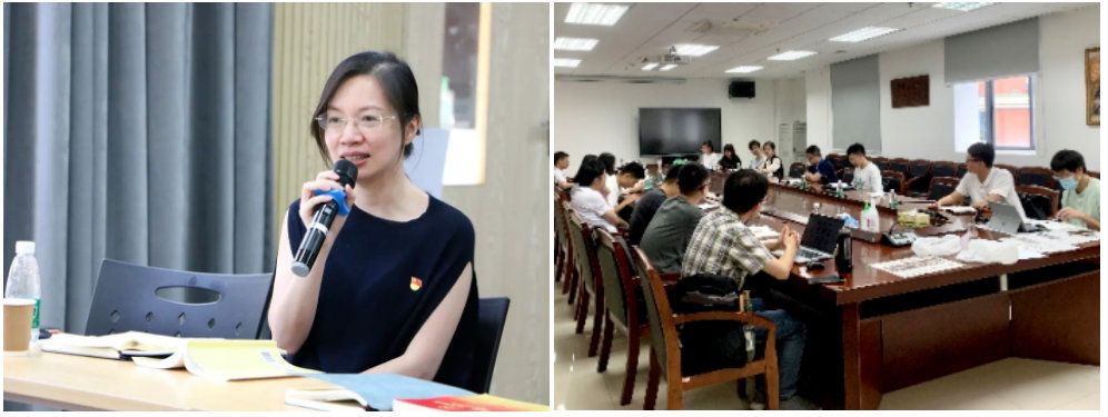 左图:王莉婧副书记介绍活动 右图:集中学习党的二十大报告