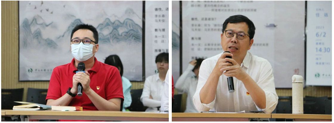 哲学系党委委员吴重庆教授、周春健教授、党委组织部专职组织员万海峰老师分别作出点评。老师们指出,这次对谈活动在形式和内容上都是一次非常好的尝试,以对话交流的形式,将政治学习和专业学习有机结合起来,中华优秀传统文化在今天具有很大的创造性发展空间,中国共产党人所开辟的社会新境界根植于中华优秀传统文化,同时又对其加以超越。我们必须坚定历史自信、文化自信,坚持古为今用、推陈出新,把马克思主义思想精髓同中华优秀传统精华贯通起来,让马克思主义在中国牢牢扎根。