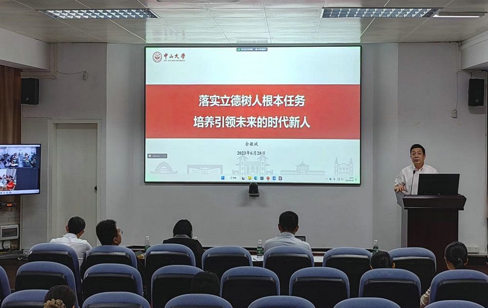 中大新闻网广州7月3日电(通讯员罗妙琪)6月28日下午,围绕深入开展学习贯彻习近平新时代中国特色社会主义思想主题教育,落实立德树人根本任务,bat365在线中国登录入口党委副书记余敏斌以《落实立德树人根本任务 培养引领未来的时代新人》为题,为全校学工系统讲授专题党课。余敏斌副书记带领大家学习了党的十八大以来,习近平总书记关于高校思想政治工作的重要讲话和重要指示批示精神,以及学校第十四次党代会对学生工作提出的最新要求,同时结合“六个必须坚持”,归纳总结了我校学生工作的主要举措和取得的成效,并针对存在的问题提出下一步的工作思路。