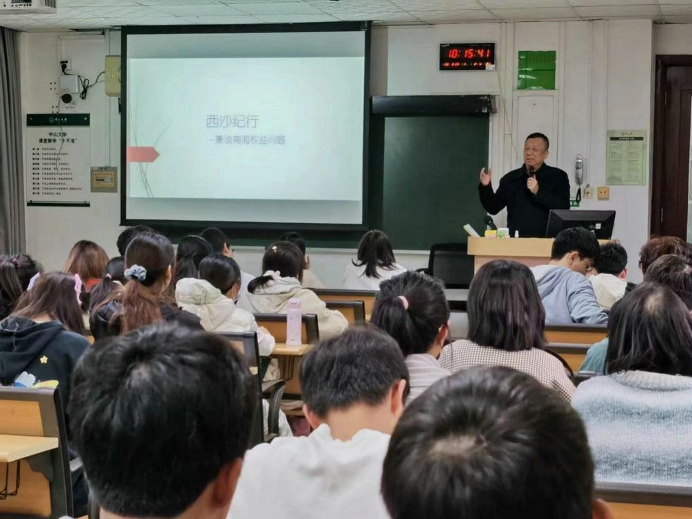 退休教师王建华教授为南校园一年级本科生讲授西沙科考及学院历史