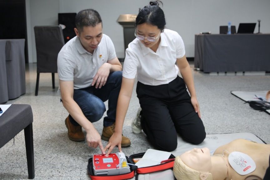 “这二十多年,我在体育西这里就遇到过4名倒地的患者,挽救了4条生命,所以说把握‘黄金4分钟’是非常重要的。”邢帮荣以自身经历向在座学员强调学习心肺复苏操作流程以及AED除颤仪使用方法的重要性。
