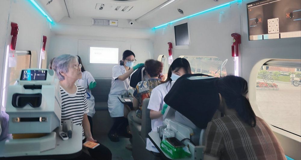 “听说校园里来了一辆神奇的5G智能眼科巡诊车,在家门口十几分钟就能做完检查,我就赶紧报名了,谢谢你们。”一位九十多岁的中大老教授高兴地说。