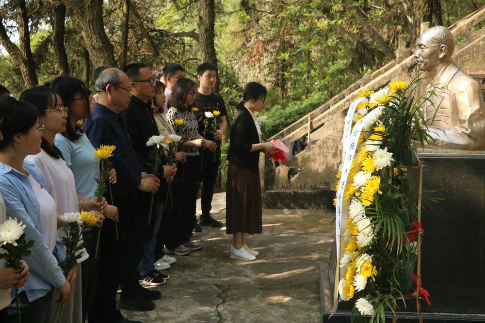 师生党员抵达陈心陶纪念地,向陈心陶教授铜像纪念碑鞠躬敬礼、敬献鲜花,表达崇敬与缅怀之情。陈心陶教授一生致力于寄生虫病防治研究,对科学孜孜不倦地追求,成功战胜并消灭了血吸虫病,为新中国培养了一批寄生虫学科的科研专家和教学骨干。