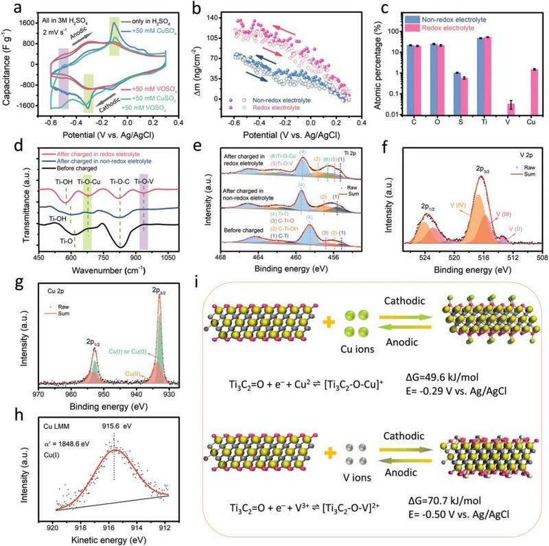图2. 氧化还原添加剂和Ti3C2Tx MXene相互作用机理