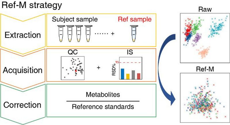 成果一:Ref-M代谢组学批次效应消除策略及其在早期肺腺癌血清代谢中的研究