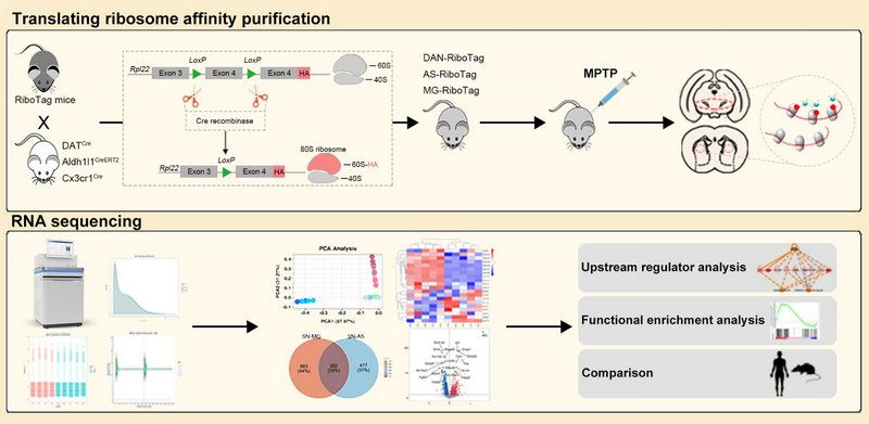 RiboTag小鼠原理及MPTP模型翻译组图谱构建流程