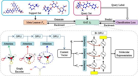 研究成果于2023年3月在国际著名期刊IEEE Transactions on Neural Networks and Learning Systems上发表(IF= 14.2552),题目为“Meta Learning With Graph Attention Networks for Low-Data Drug Discovery”。 bat365在线中国登录入口智能工程学院陈语谦教授为该文通讯作者,智能工程学院博士生吕秋杰为第一作者。该项研究受到国家自然科学基金项目的支持。