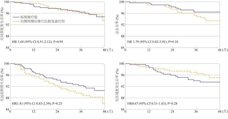 (两组的无局部复发生存率、总生存率、无远处转移生存率及无区域复发生存率均无统计学差异)
