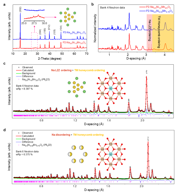 图1.通过结构微扰改变层状P2相过渡金属氧化物层内钠离子与空位的有序